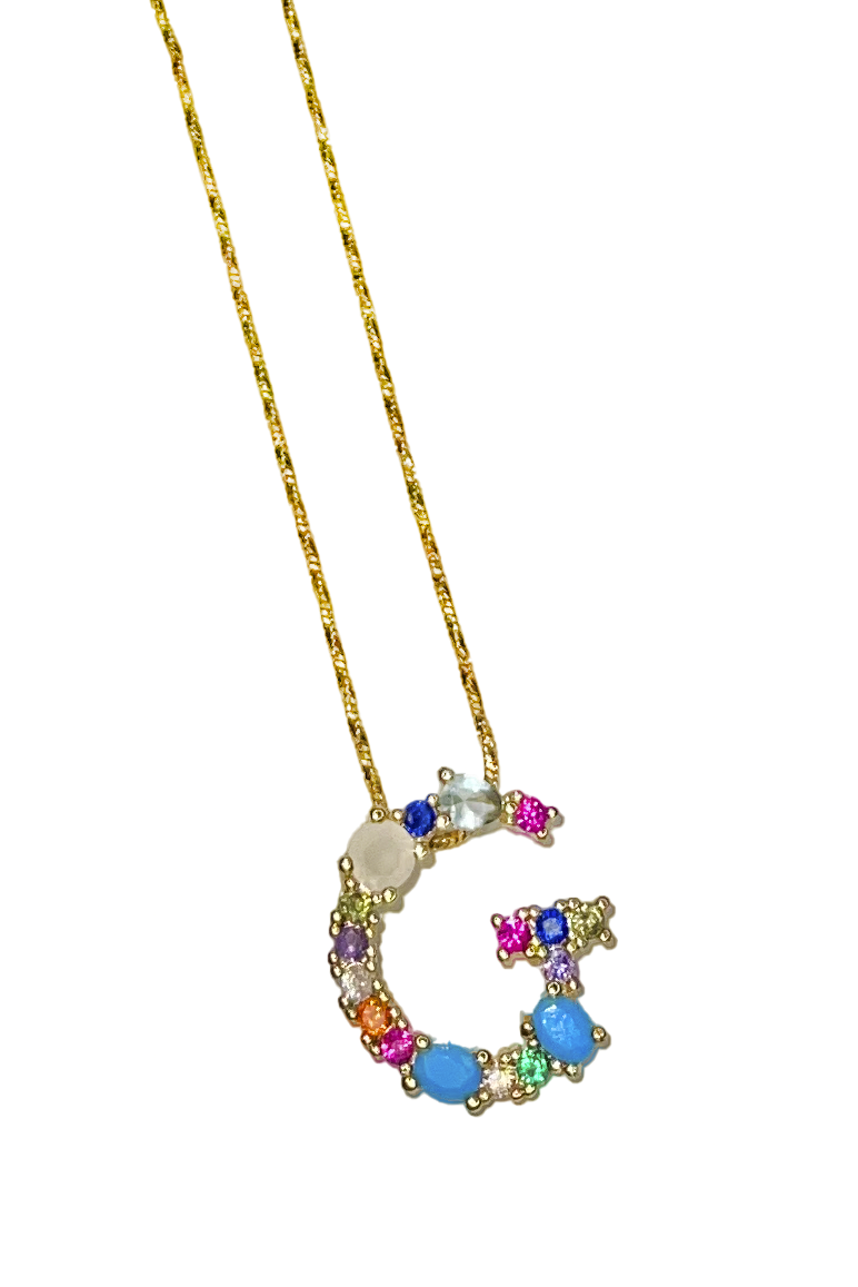 Letter Necklace made of Rhodium Gold Plated and Zirconia