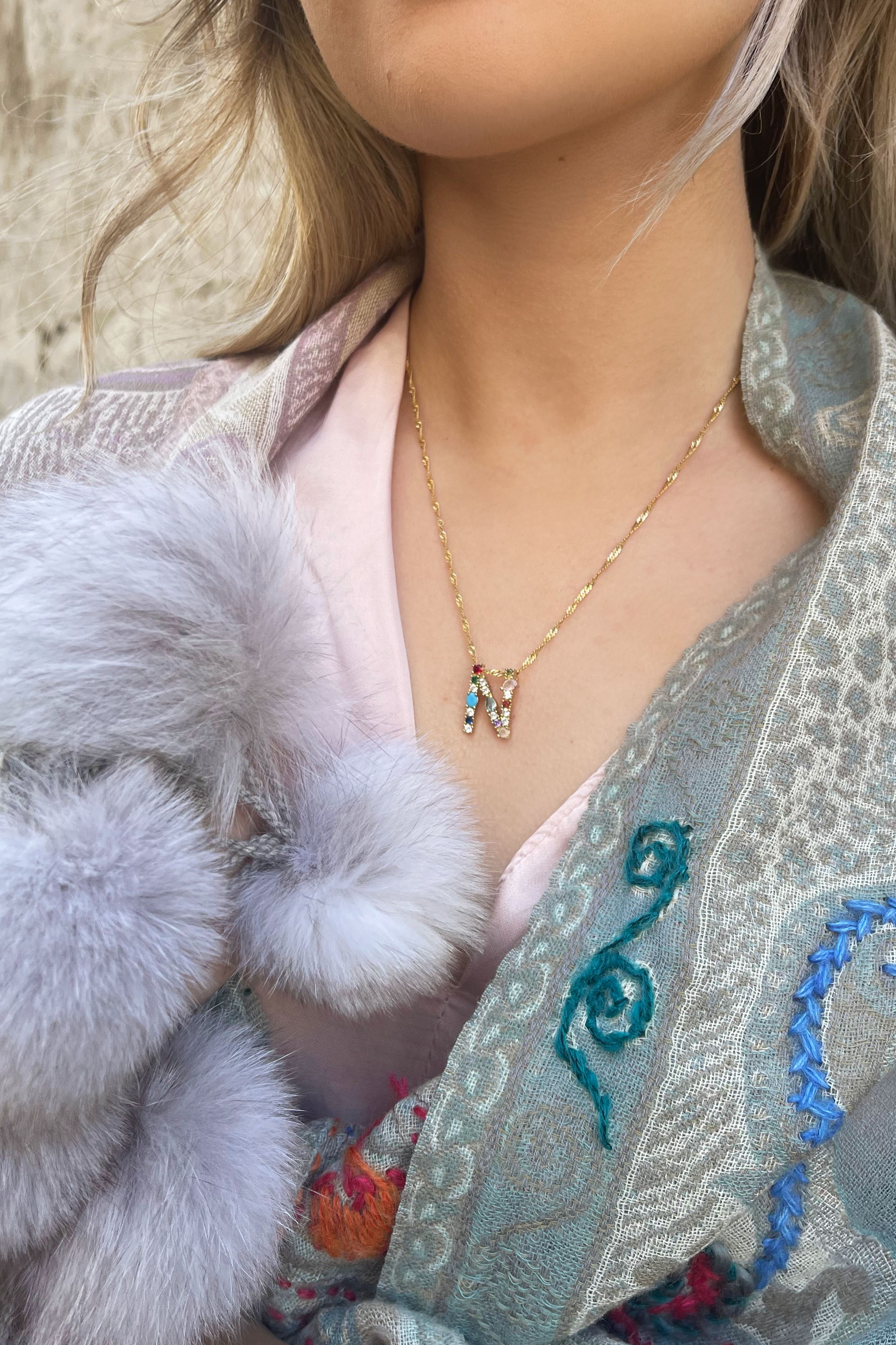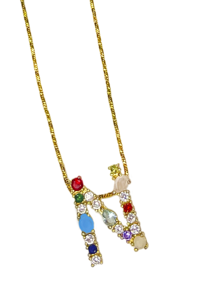 Letter Necklace made of Rhodium Gold Plated and Zirconia