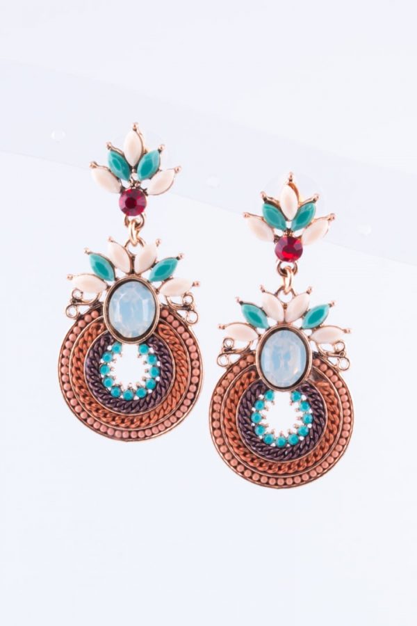 Earing made of beads and microbeads, stones in acrylic, crystals and chains, vintage style